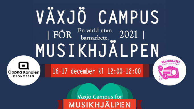 Den 16-17 december med start 12.00 sänder Studentföreningen RadioLUR sin lokala version av Musikjälpen LIVE under 24 timmar! Detta görs i samband med Musikhjälpen 2021. Det kommer gästas av en organisation per timme från Campus och Växjö stad.